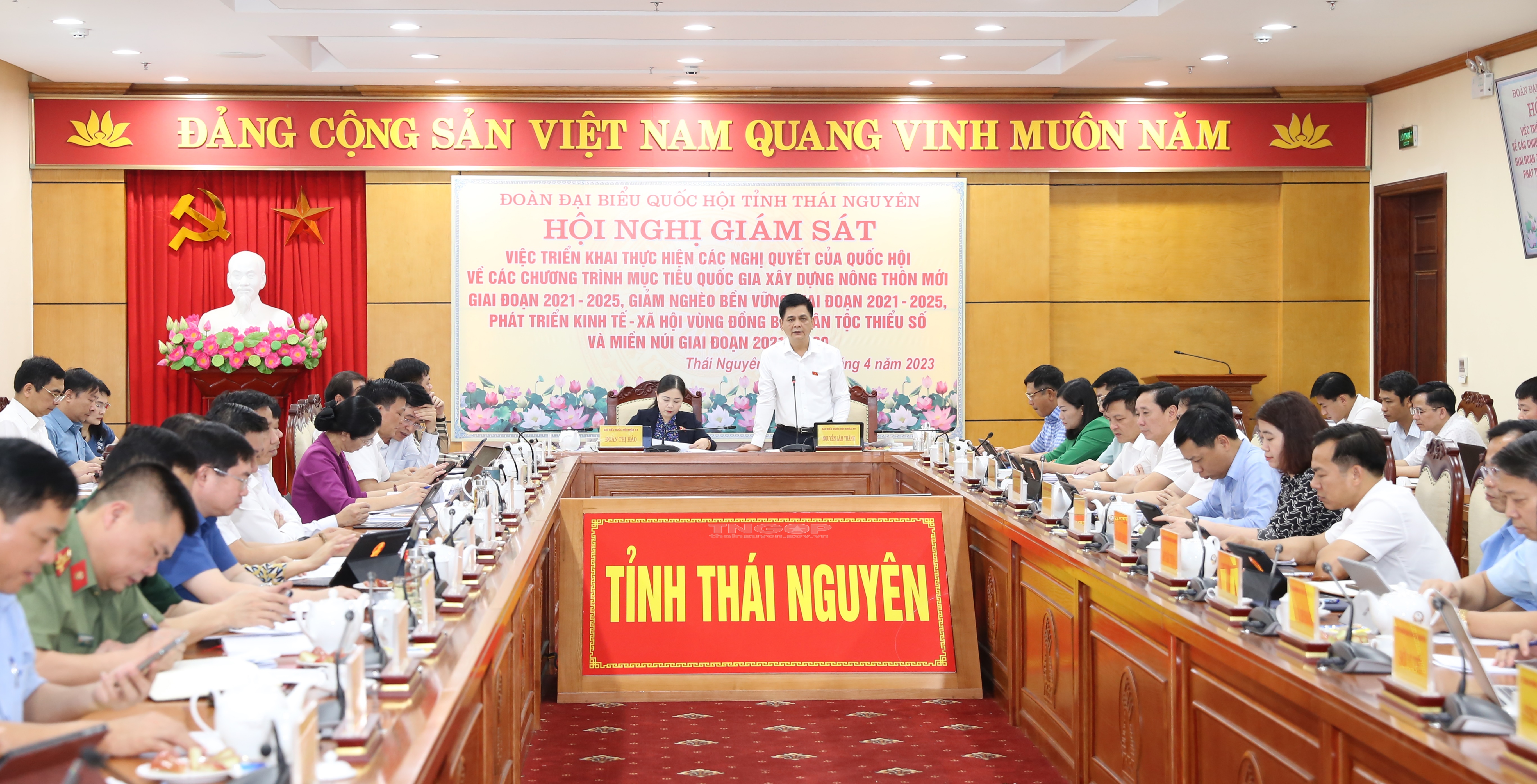 Chiều ngày 18/4, đồng chí Đoàn Thị Hảo, Ủy viên BTV Tỉnh ủy, Phó Trưởng đoàn chuyên trách Đoàn ĐBQH tỉnh và đồng chí Nguyễn Lâm Thành, Phó Chủ tịch Hội đồng Dân tộc của Quốc hội chủ trì Hội nghị giám sát đối với UBND tỉnh việc triển khai thực hiện các nghị quyết của Quốc hội về 3 chương trình mục tiêu quốc gia (xây dựng nông thôn mới giai đoạn 2021 - 2025; giảm nghèo bền vững giai đoạn 2021 - 2025; phát triển kinh tế - xã hội vùng đồng bào dân tộc thiểu số và miền núi giai đoạn (2021 - 2030).