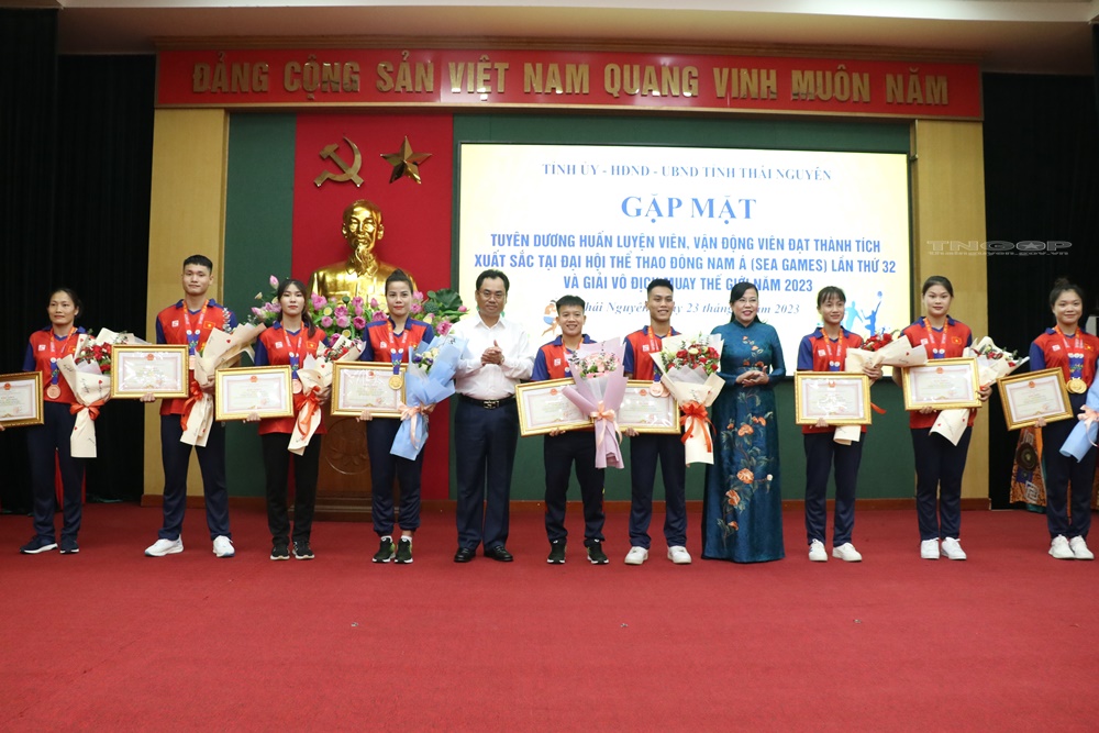 Đại hội thể thao Đông Nam Á lần thứ 32 (SEA Games 32) được tổ chức ở Phnôm Pênh, Campuchia từ ngày 5 đến 17/5/2023. Tham dự sự kiện này, tỉnh Thái Nguyên có 09 VĐV chính thức, 02 HLV thi đấu ở các môn Jujitsu, KunKhmer, Đua thuyền, Bóng đá nữ. Với quyết tâm cao, các VĐV của Thái Nguyên đã vượt qua nhiều đối thủ mạnh trên thế giới và khu vực, mang vinh quang về cho nước nhà. Các VĐV của Thái Nguyên đoạt 06 huy chương vàng, 04 huy chương đồng. Tại Giải vô địch thế giới Muay năm 2023, tỉnh Thái Nguyên có 02 VĐV và 01 HLV tham gia, đạt 01 Huy chương Vàng, 01 huy chương Đồng. Tiêu biểu là VĐV Nguyễn Hồng Thái, đạt 03 Huy chương Vàng môn Đua thuyền truyền thống; VĐV Bàng Thị Mai, đạt 01 Huy chương Vàng môn Kun Khmer; VĐV Tạ Thị Kim Yến, đạt 01 Huy chương Vàng môn KunKmer...